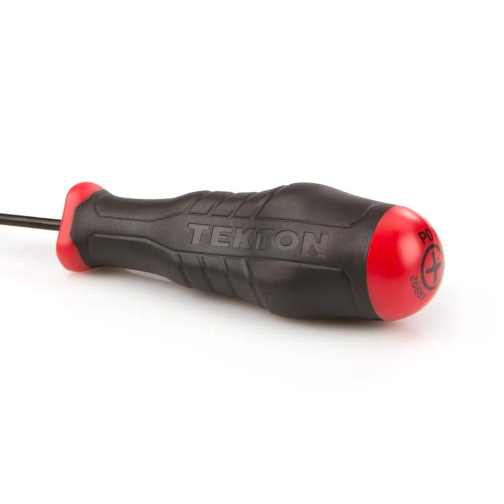 Blending power and speed, the unique handle of the TEKTON #0 Phillips x 4 in. High-Torque Screwdriver combines three-sided geometry for maximum torque and rounded top and bottom sections that let your fingertips work quickly to spin long fasteners. The Phillips tip is truncated at the tip to fully engage fasteners without bottoming out. Tip type and size are printed on the end of the driver for easy identification.
