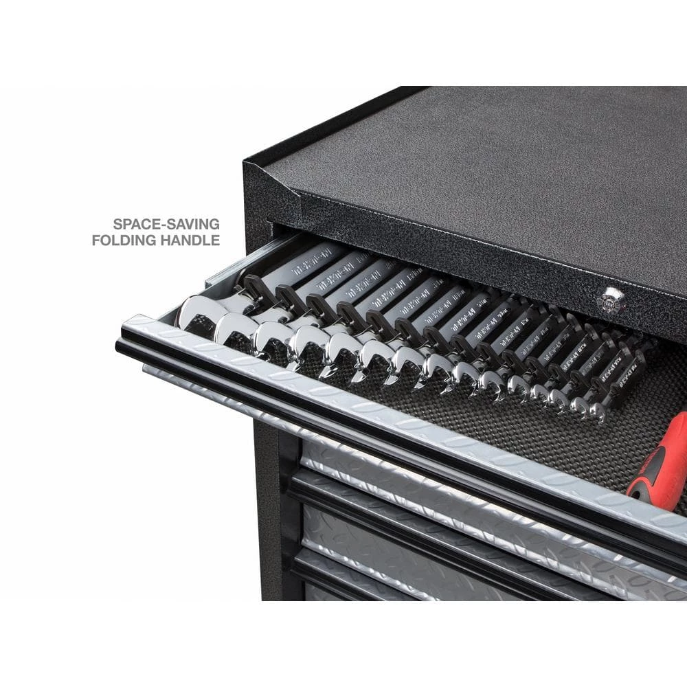 - Includes Store-and-Go Keeper with space-saving folding handle and nonslip grippers to lock in wrenches