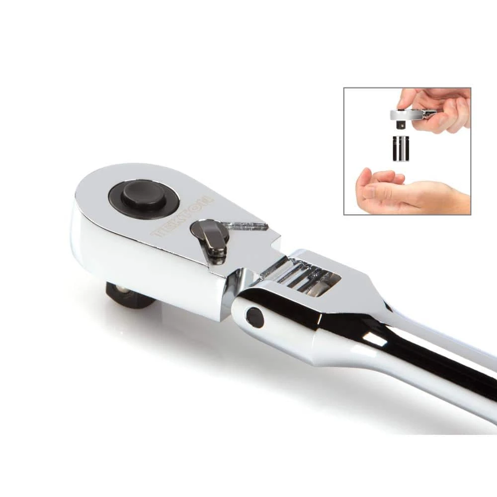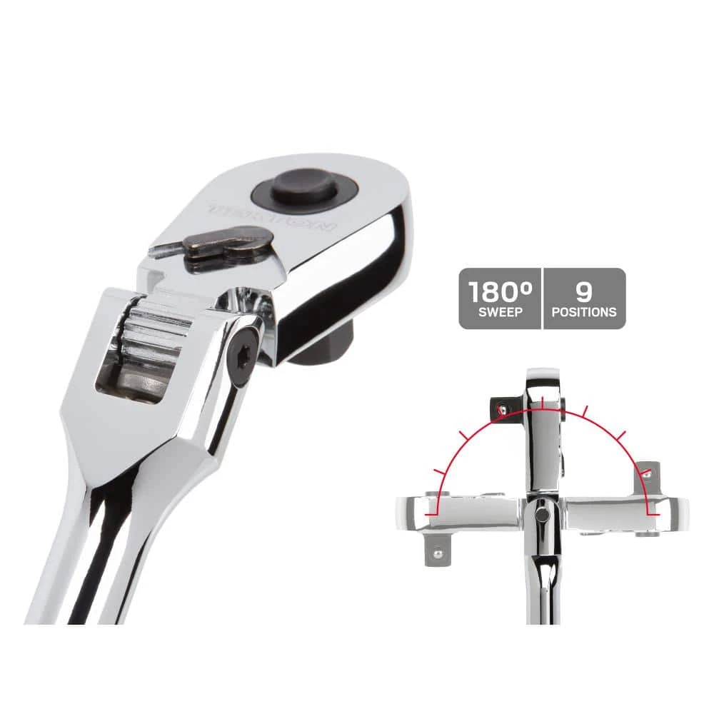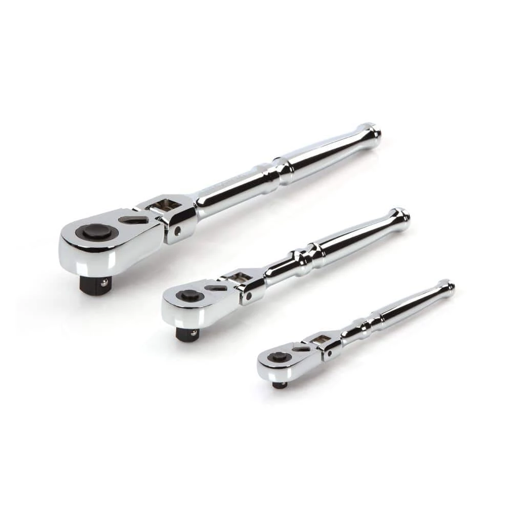 - 3-piece flex quick-release ratchets: 1/4 in., 3/8 in., 1/2 in. drive