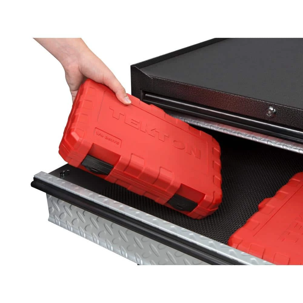 The TEKTON 1/4 in. Drive 6-Point Socket and Ratchet Set includes every socket from 5/32 in. to 9/16 in. and 4 to 14 mm with no skipped sizes. The set comes equipped with a 90-Tooth quick-release ratchet as well as a universal joint, power socket adapter and extension which aren’t often found in most sets. All of the tools come stored in a sturdy carrying case. The 6-point socket openings are ideal for working with hex-shaped fasteners and designed to grip the sides and not the corners of the fastener heads, preventing round-off. An extended length allows the deep socket to fit over long fasteners and reach into recessed areas. The large, die-stamped markings are permanently impressed into the material and optimized for readability. A mirror chrome-plated finish protects against corrosion and easily wipes clean.