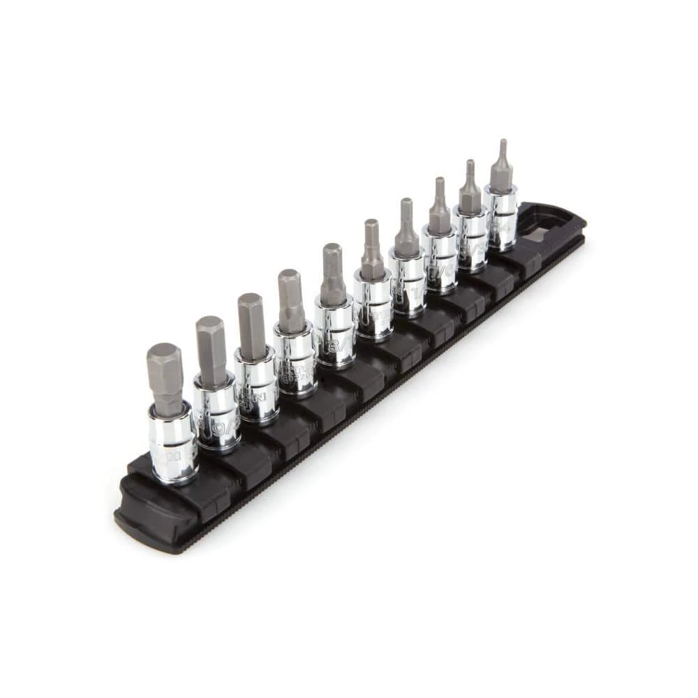 - 10-piece 1/4 in. drive hex bit sockets: 5/64 in., 3/32 in., 7/64 in., 1/8 in., 5/32 in., 3/16 in., 7/32 in., 1/4 in., 9/32 in., 5/16 in.