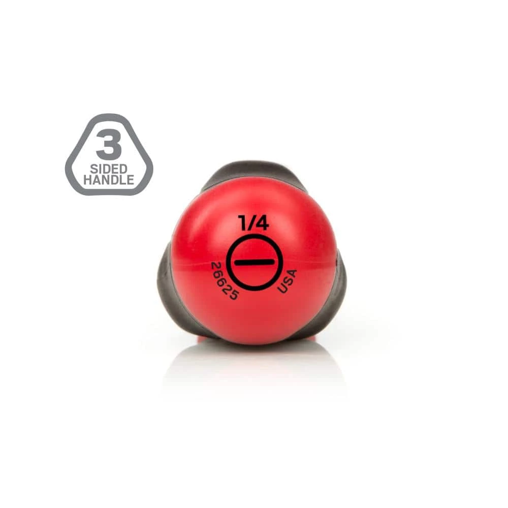 Combine power and speed with the unique handle of the TEKTON 1/4 in. Slotted x 8 in. Screwdriver. The handle relies on three-sided geometry, not just friction against your skin, giving you the comfortable leverage to break stubborn fasteners loose. For easy installation and assembly work, rounded top and bottom sections let your fingertips spin long fasteners quickly. The blade is made of premium chrome molybdenum steel and is strengthened through an exacting heat treating process. Rather than a layer of plating, the steel surface of the blade is directly treated with a hot black oxide finish-the same process used to protect firearms. This finish can’t flake off, and it preserves the precisely sized tip for an exact fit in fasteners over time. The butt end has a clear size marking that is easy to identify in your tool belt or chest drawer.