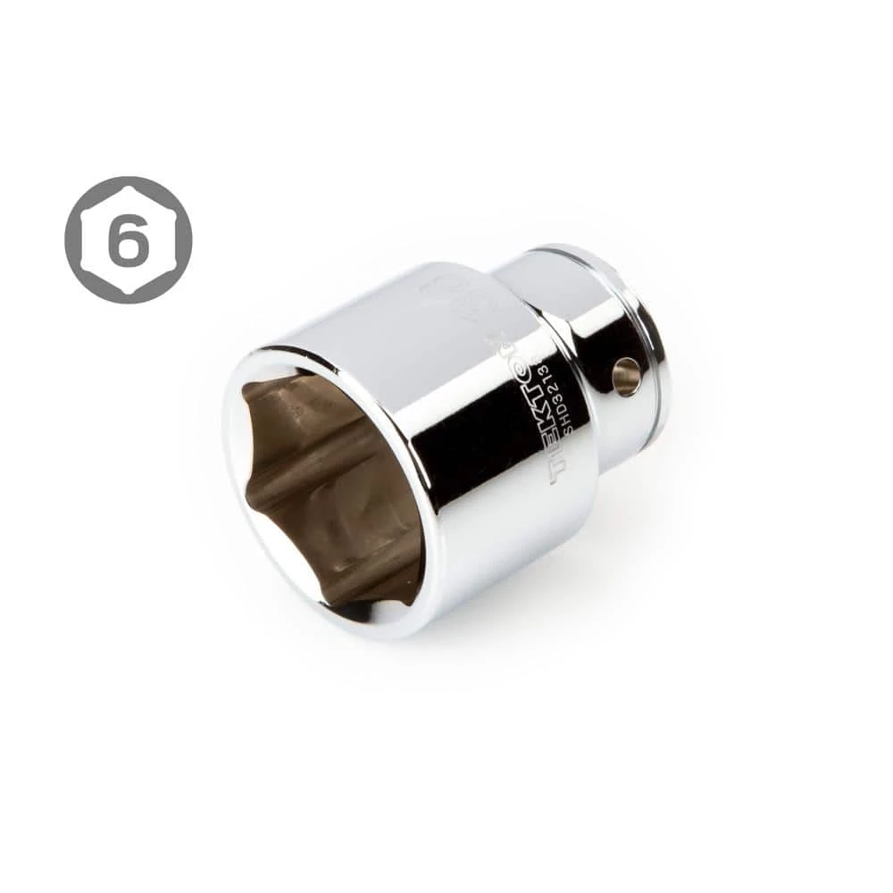 - 6-point sockets apply force to flat sides of fasteners and not the corners, preventing round-off