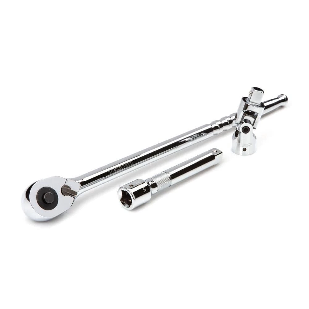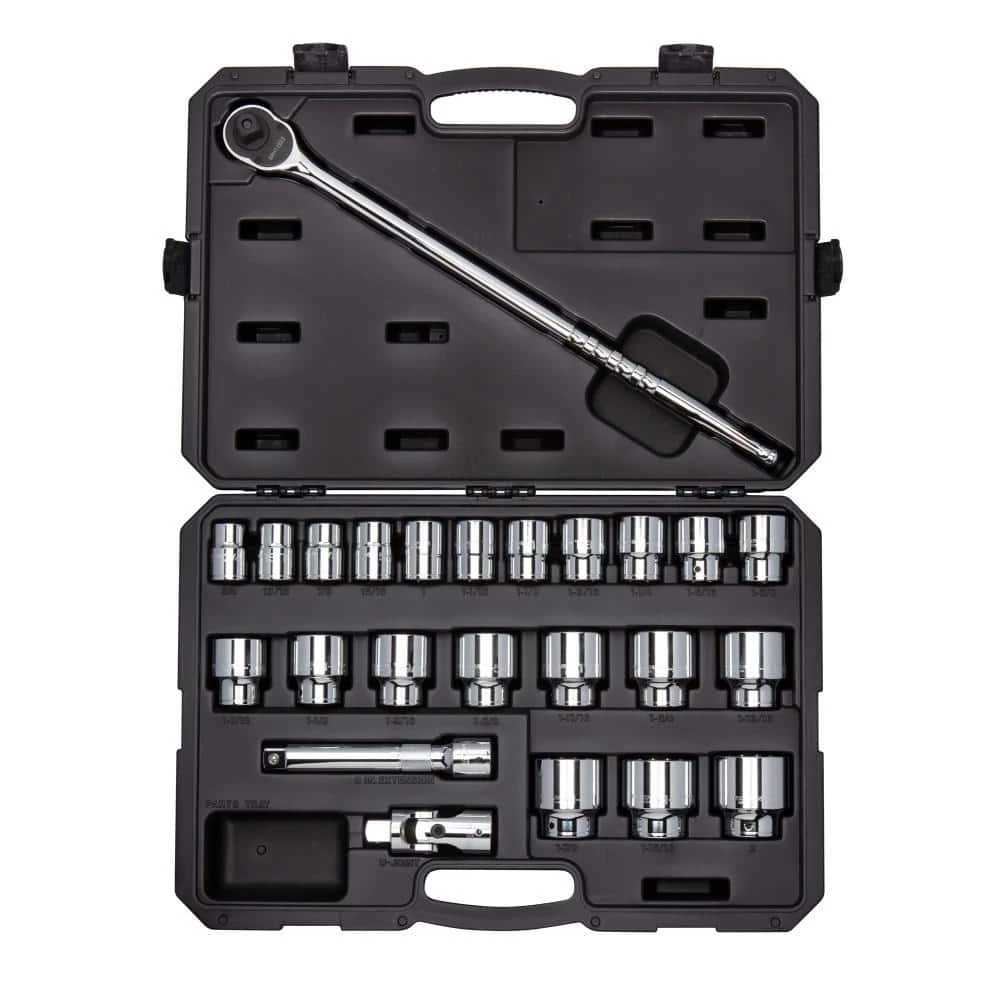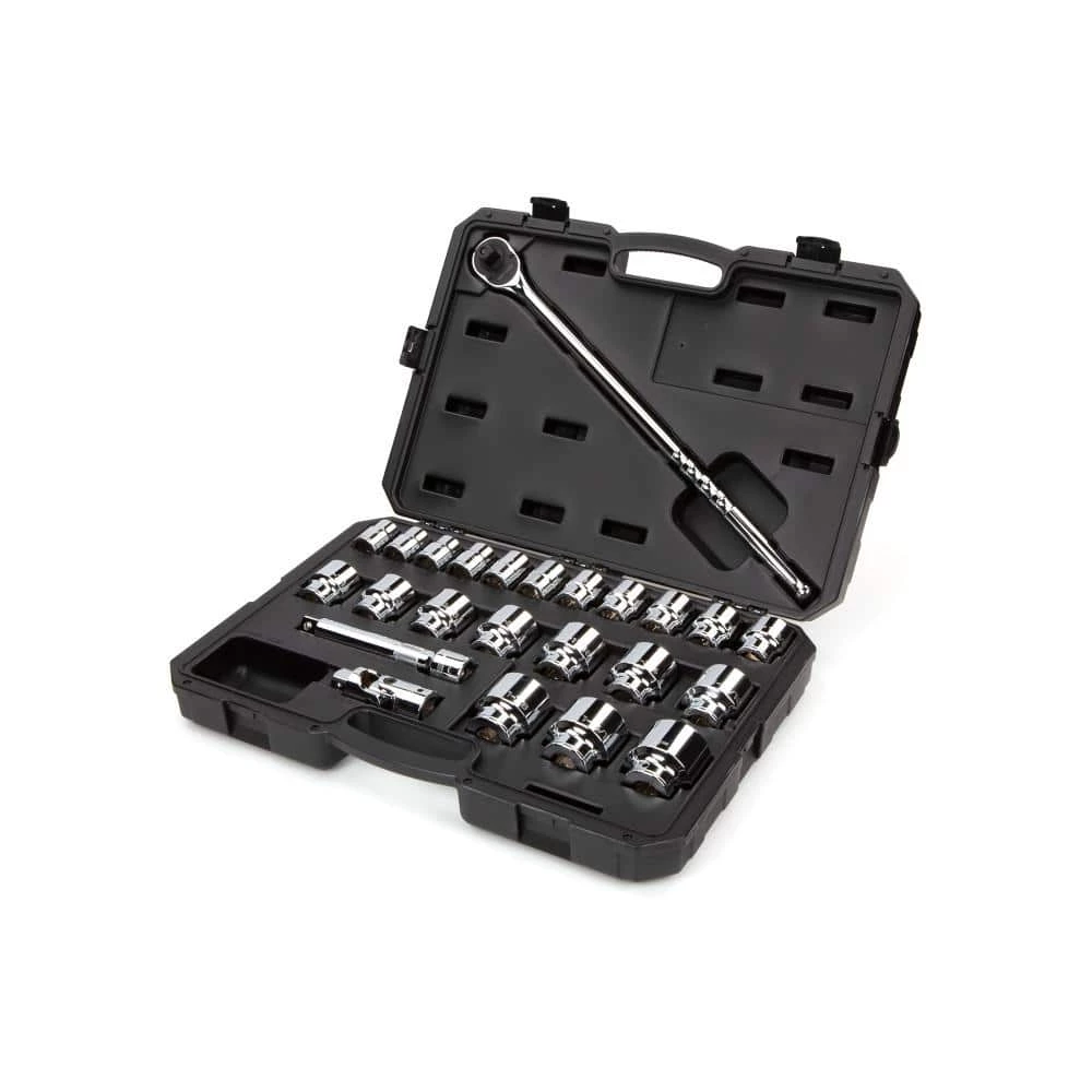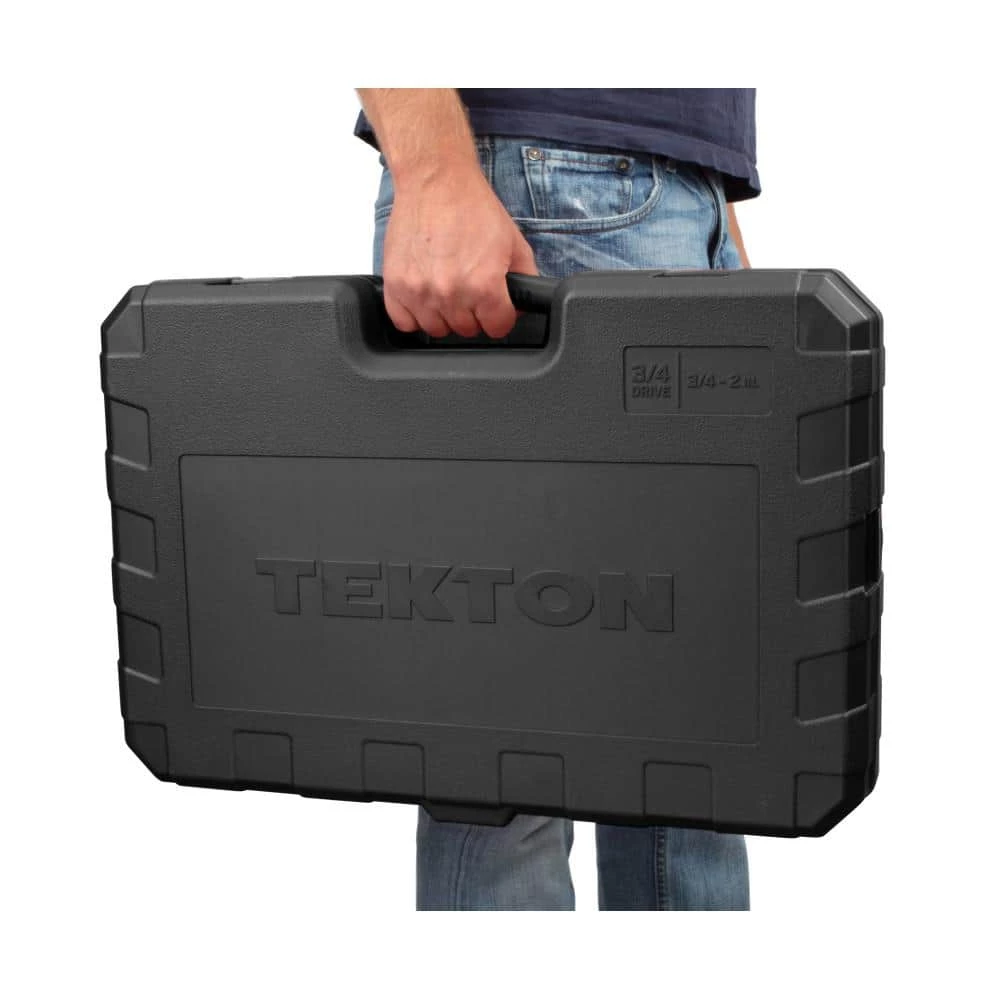 The TEKTON 3/4 in. Drive 6-Point Socket and Ratchet Set includes every socket from 3/4 in. to 2 in. with no skipped sizes. The set comes equipped with a 72-Tooth quick-release ratchet as well as a universal joint and 8 in. extension, which aren’t often found in most sets. All of the tools come stored in a sturdy carrying case. The 6-point socket openings are ideal for working with hex-shaped fasteners and designed to grip the sides and not the corners of the fastener heads, preventing round-off. The large, die-stamped markings are permanently impressed into the material and optimized for readability. A mirror chrome-plated finish protects against corrosion and easily wipes clean. The TEKTON 3/4 in. drive socket system is well-suited for big service and repair jobs on heavy equipment, trucks, tractors and large machinery and consistently meets or exceeds the industry standards for socket strength and performance.