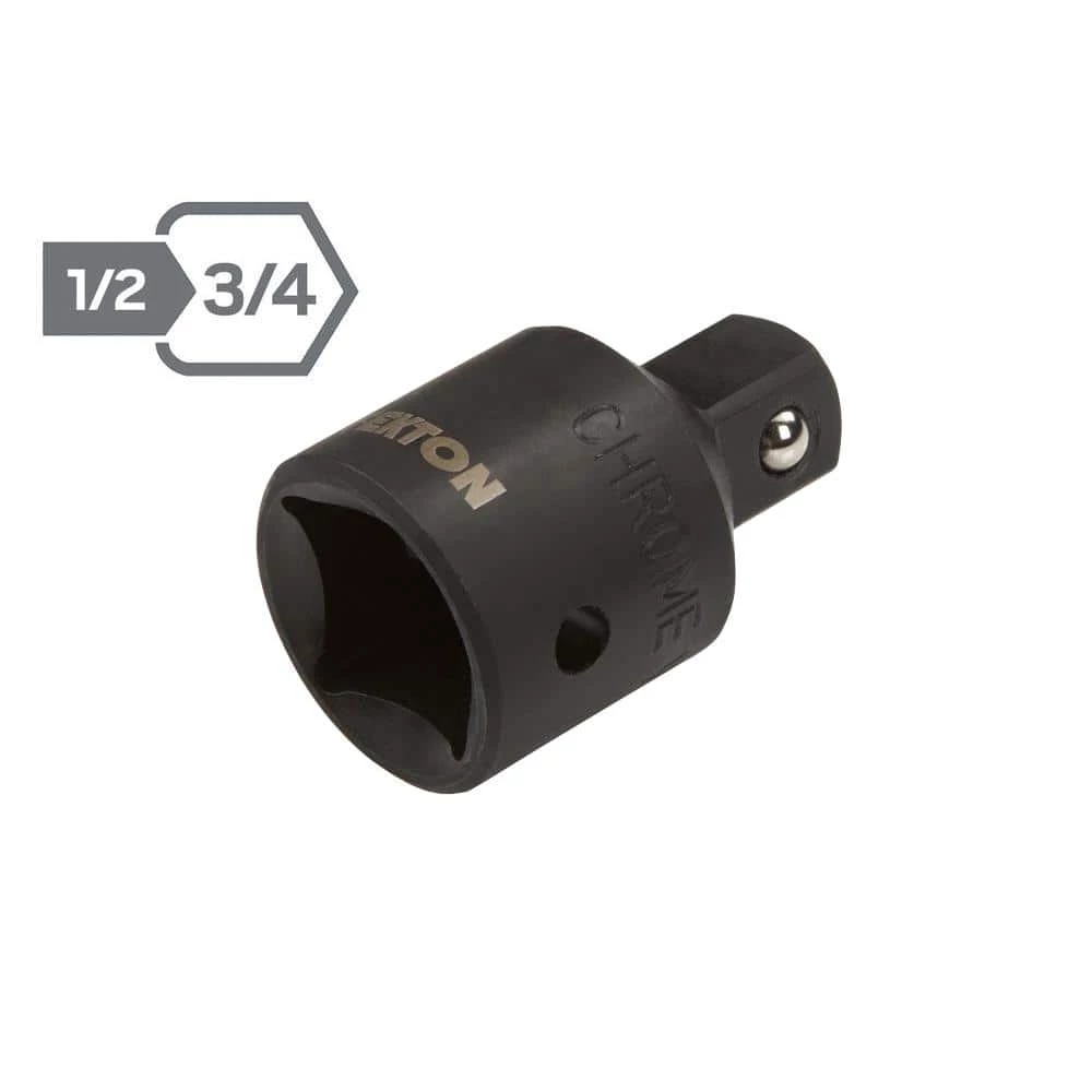 Be ready for anything with the TEKTON 3/4 in. Drive (F) to 1/2 in. Drive (M) Impact Reducer. Engineered for use with impact drivers, this problem solver gives you more options for dealing with the unexpected. It creates a solution for lost or broken sockets, fills the gaps in incomplete size ranges, and extends the capability of your existing socket system. Made from premium chrome vanadium steel, it is precisely heat treated for superior strength and protected by a corrosion-resistant black oxide finish.