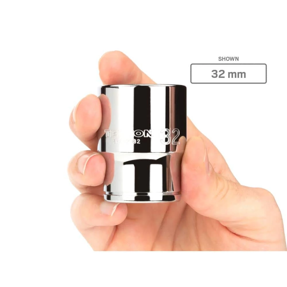 TEKTON 3/4 Inch Drive Sockets are well-suited for big service and repair jobs on heavy equipment, trucks, tractors, and large machinery. The 6-point socket opening is ideal for working with hex-shaped fasteners and is designed to grip the sides and not the corners of the fastener heads, preventing round-off. The large, die-stamped markings are permanently impressed into the material and optimized for readability. A mirror chrome-plated finish protects against corrosion and easily wipes clean. TEKTON 3/4 Inch Drive Sockets are available in a range of metric sizes from 19 to 50 mm and consistently meet or exceed the industry standards for socket strength and performance.