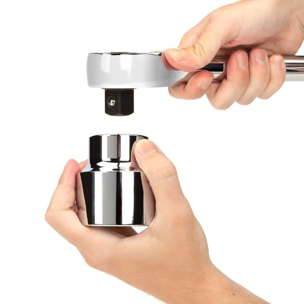 The Tekton 3/4 Inch Drive x 22 Inch Ratchet is the world’s most refined 3/4 inch drive ratchet. Its 72-tooth gear produces a working swing arc of just 5-degrees, and combined with the ultra-compact head, gets the job done in tight spaces-while still delivering up to 1000 ft.-lb. of torque. Its polished exterior has a chrome plated finish that’s corrosion-resistant and easy to wipe clean.