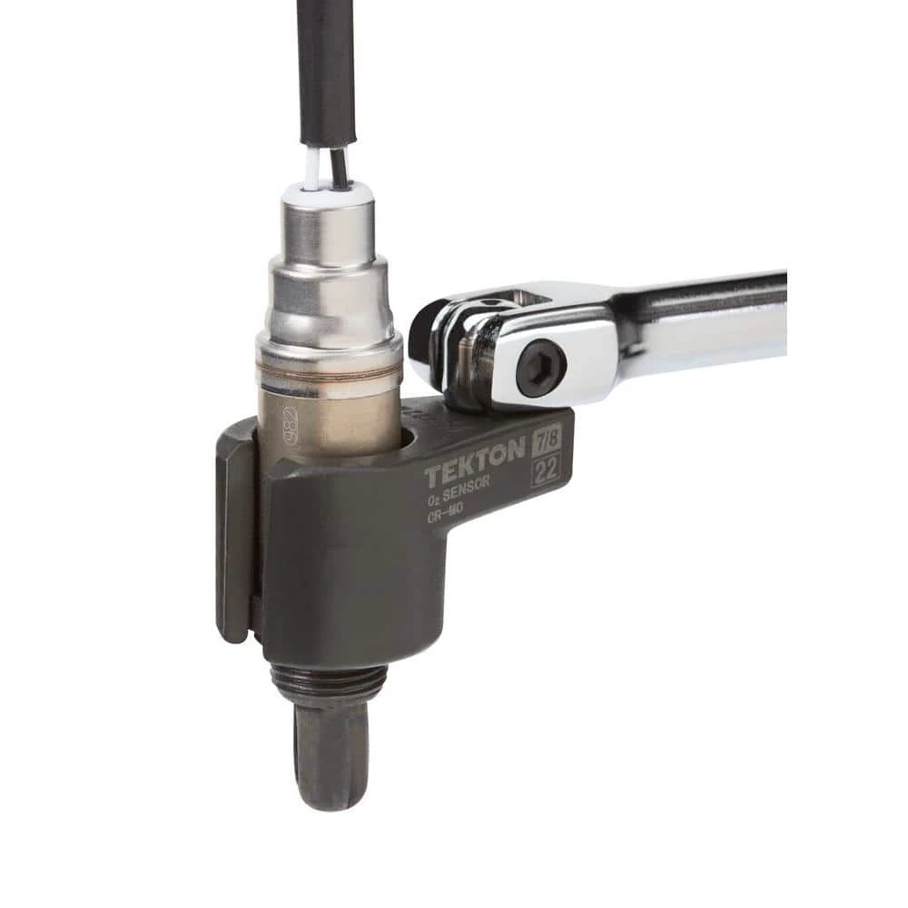 Built for use with ratchets and breakers bars, the TEKTON 47749 Offset Oxygen Sensor Socket makes removing and installing oxygen sensors on vehicles with computer-controlled engines easy. A heat treated, chrome molybdenum steel construction ensures that the socket will take on oxygen sensors time and time again. The corrosion-resistant black phosphate finish also adds longevity to the socket. Designed with mechanics in mind, this socket works quickly and efficiently in the tight space around oxygen sensors. The 6-point beveled nose design securely grips sensor fasteners, preventing damage to the sensor. A wire gate allows you to easily slip the socket onto the sensor, preventing damage to the wires. And with the offset design, it’s possible to access the oxygen sensor from the side, not the top, which eliminates the possibility of damage to wires. Even in low light, the high-contrast, permanent, laser etched size markings are easy-to-read. The size is also engraved into the chrome molybdenum steel on the top of the socket.