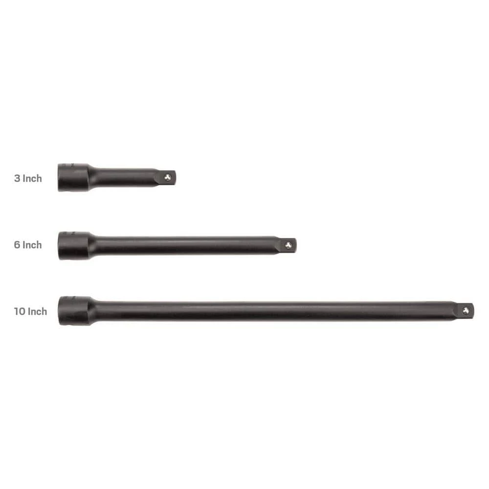 - 3-pc 3/8 inch drive impact extensions: 3, 6, 10 in.