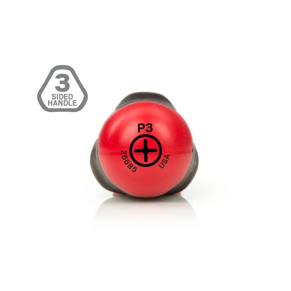 Combine power and speed with the unique handle of the TEKTON #3 Phillips x 8 in. Screwdriver. The handle relies on three-sided geometry, not just friction against your skin, giving you the comfortable leverage to break stubborn fasteners loose. For easy installation and assembly work, rounded top and bottom sections let your fingertips spin long fasteners quickly. The blade is made of premium chrome molybdenum steel and is strengthened through an exacting heat treating process. Rather than a layer of plating, the steel surface of the blade is directly treated with a hot black oxide finish-the same process used to protect firearms. This finish can’t flake off, and it preserves the precisely sized tip for an exact fit in fasteners over time. The butt end has a clear size marking that is easy to identify in your tool belt or chest drawer.
