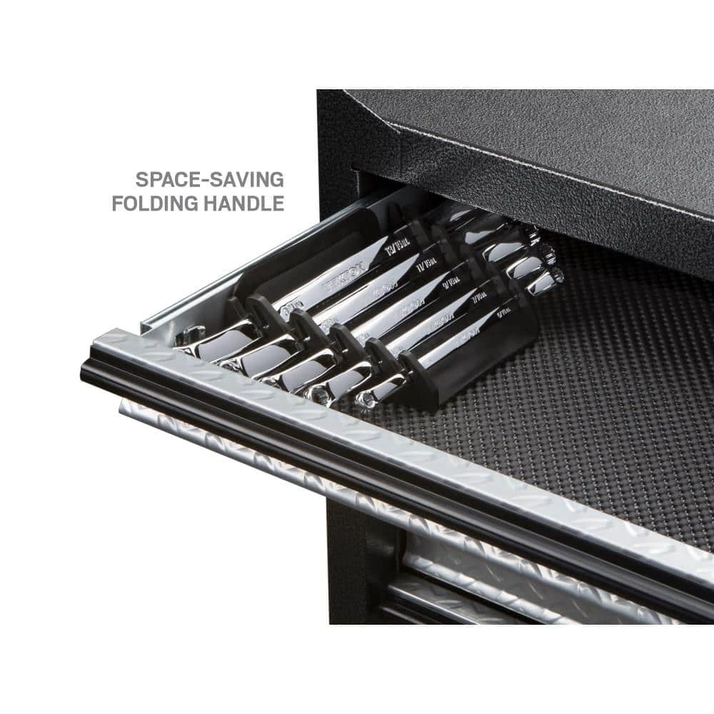 - Includes Store-and-Go Keeper with space-saving folding handle and nonslip grippers to lock in wrenches