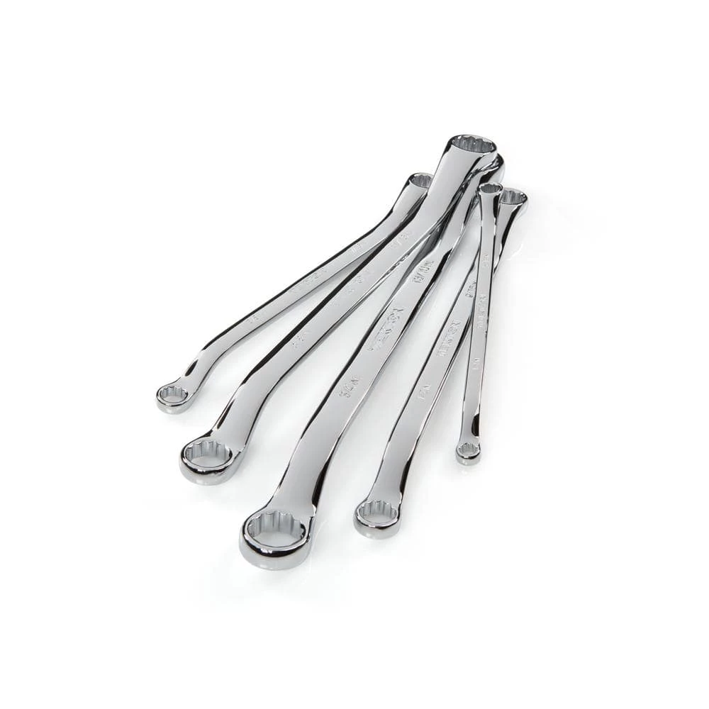 - 5-piece 45° offset box end wrenches (inch): 1/4 in. x 5/16 in., 3/8 in. x 7/16 in., 1/2 in. x 9/16 in., 5/8 in. x 11/16 in., 3/4 in. x 13/16 in.