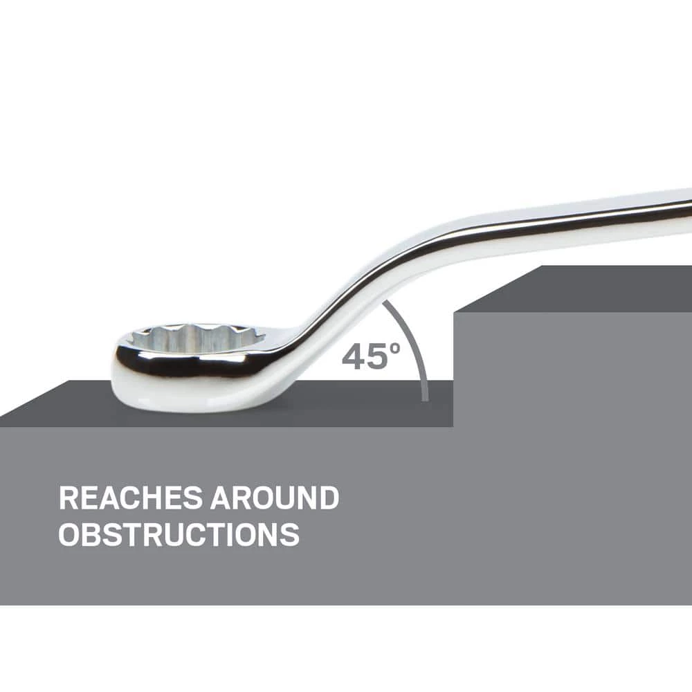 Generous Offset: Each end is offset 45°, creating plenty of clearance for your fingers and allowing an easy reach over and around obstructions.12-Point Openings: Doubling the access angles of 6-point wrenches, these 12-point openings make it easier to work in tight spaces.Non-Rounding Geometry: To prevent damaging round-off, the geometry of each opening contacts and applies force to the flat sides of fastener heads rather than the corners.Organized Storage: The versatile Store-and-Go Keeper has a folding handle that saves space in your drawer or tool chest. When you’re on the move, the nonslip grippers lock wrenches securely in place.