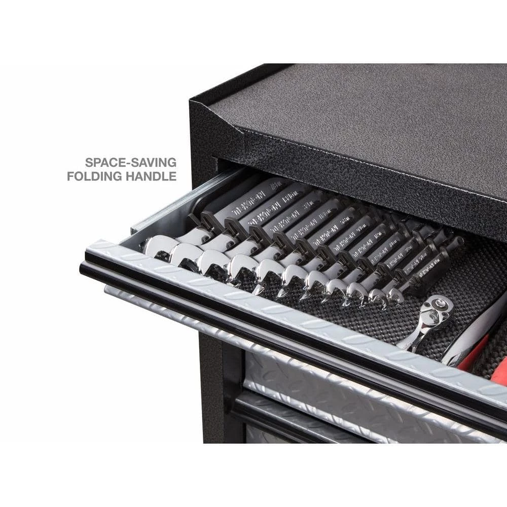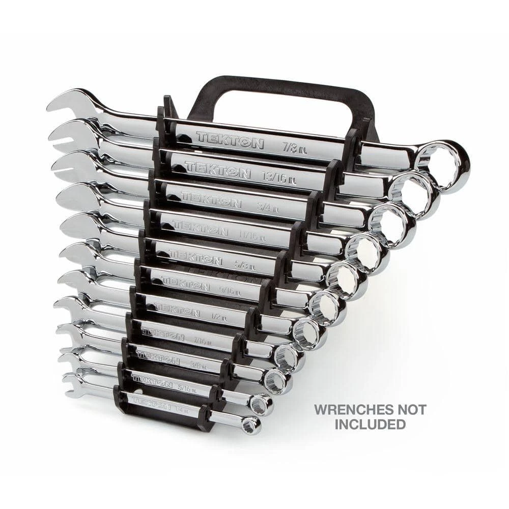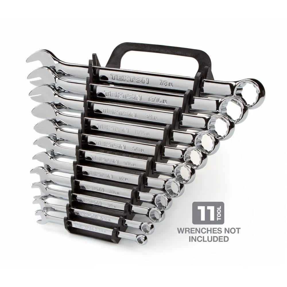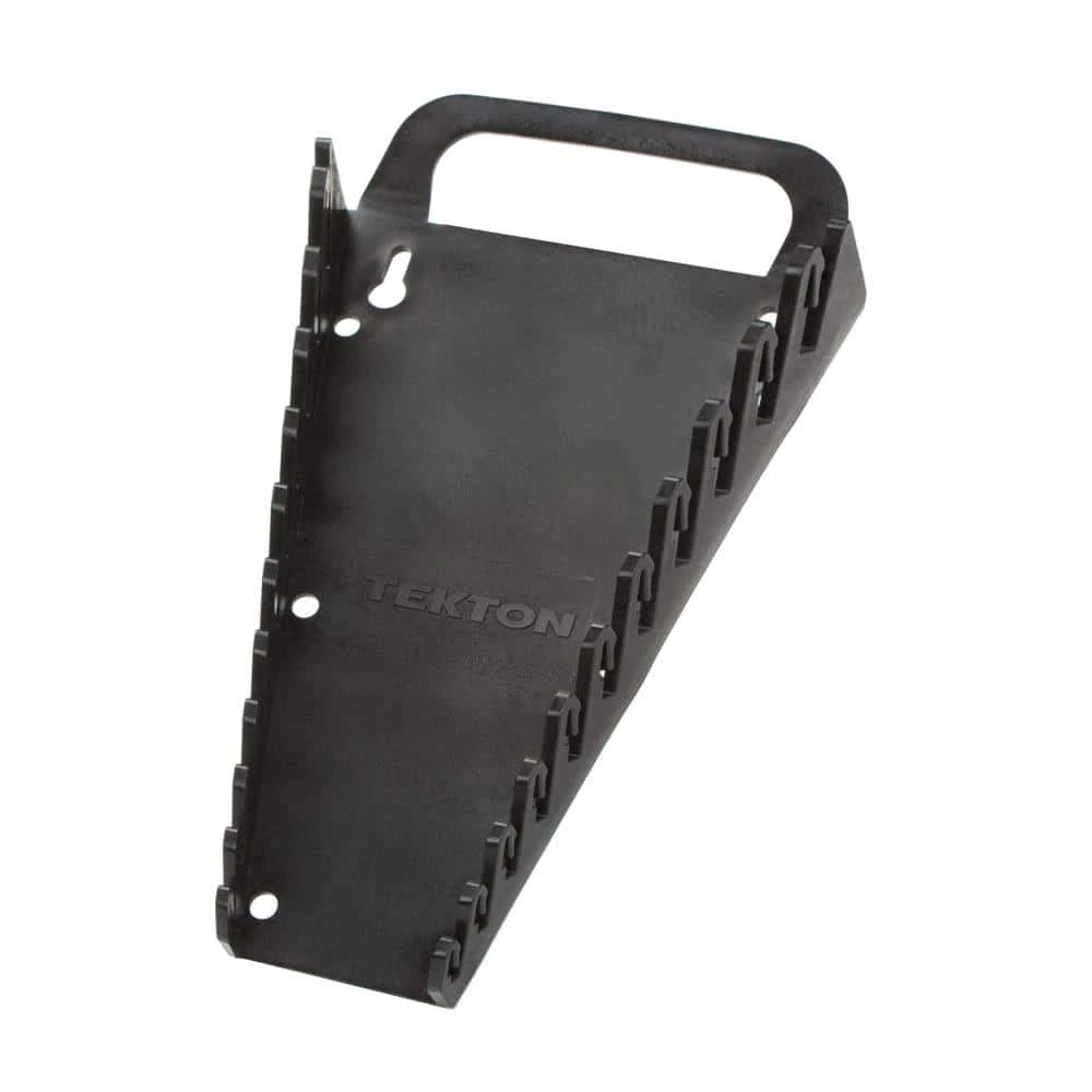 While most tool holders have limited functionality, the TEKTON 11-Tool Store and Go Wrench Keeper is a toolbox drawer organizer and a secure carrier that goes with you. Designed to save space, it has a fold-away handle and a lean, low profile that fits shallow drawers. Made from a specially formulated polymer, it offers the right balance of a nonslip grip on wrenches and the flexibility to easily remove them with one hand. The universal wrench slot shape fits a range of sizes and multiple styles including raised panel. Resistant to fuels, lubricants, solvents, and most common chemicals, the Store and Go Wrench Keeper can’t rust, is nearly unbreakable, and doesn’t have any sharp edges that could scratch or damage tools.