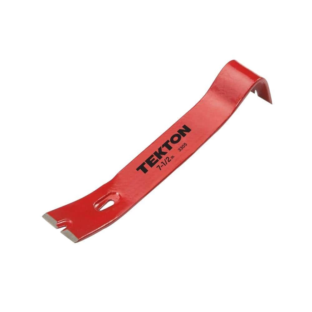 Perfect for trim and cabinetry work, the mini TEKTON 7-1/2 in. Utility Pry Bar is a versatile, all-purpose prying and nail-pulling workhorse. Small and lightweight, it is easy to handle in tight spaces. Its sharp, thin chisel ends slip effortlessly behind pieces of trim and molding, working them loose without damaging wall or cabinet surfaces. Nail slots at each end and in the middle let you get at nails from multiple positions or angles. They slide under and grip the small heads of finishing nails and brads, even those from air nailers, giving you the leverage to pull them cleanly. Made from high-strength forged and heat-treated steel, this little guy will quickly become one of your favorite tools in the box.