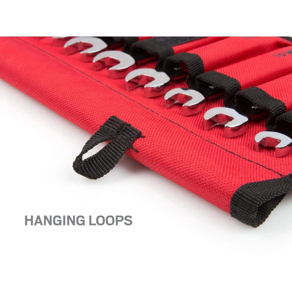 - Includes roll-up storage pouch with tailored cover that keeps wrenches in place so they can’t slide out