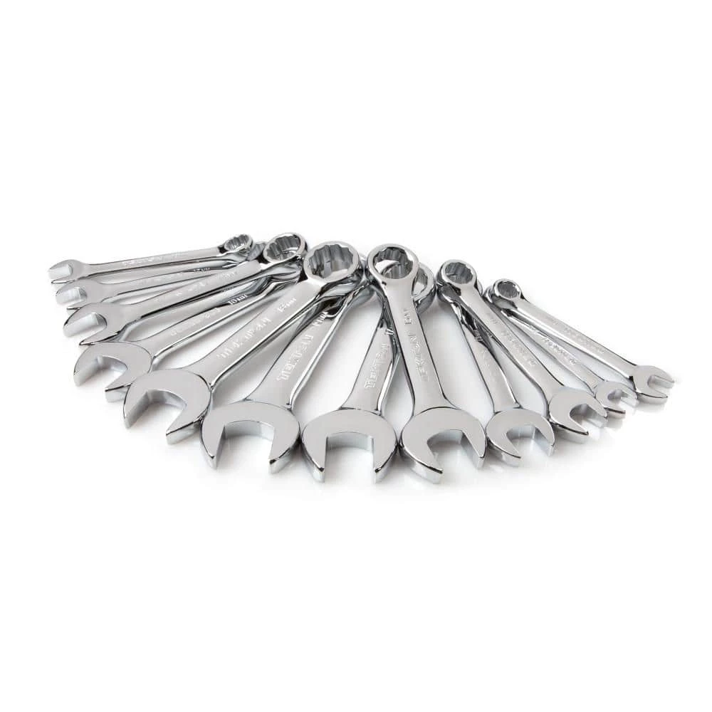 - 12-pc. stubby combination wrenches: 8, 9, 10, 11, 12, 13, 14, 15, 16, 17, 18, 19 mm