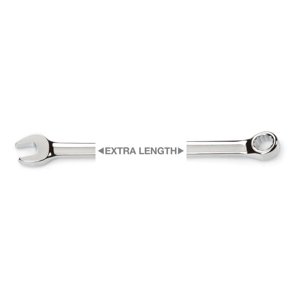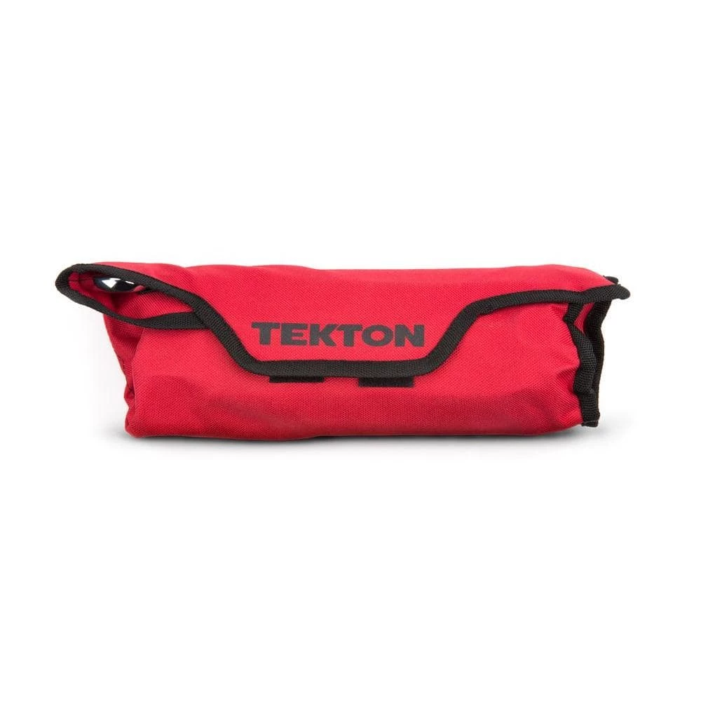 With every size from 8 to 22 mm, the TEKTON 15-piece Combination Wrench Set is designed for premium performance. These wrenches are longer than most standard-pattern wrenches for extended reach and increased torque. To engage fasteners twice as often and reduce the working swing arc in tight spaces, open ends are angled 15° so the wrenches can be flipped over with each rotation. The 12-point box ends double the access angles of a 6-point, and they are offset 15° to create clearance for your fingers. To prevent round-off, they are designed to grip the flat sides of fastener heads rather than the corners. Each wrench is forged from the highest-quality chrome vanadium steel and protected by a tough mirror chrome finish that wipes clean easily. The set includes a roll-up storage pouch with a tailored cover that keeps wrenches from sliding out when you are on the move. To prevent scratches on finished surfaces, the pouch has fabric hanging loops rather than metal grommets.